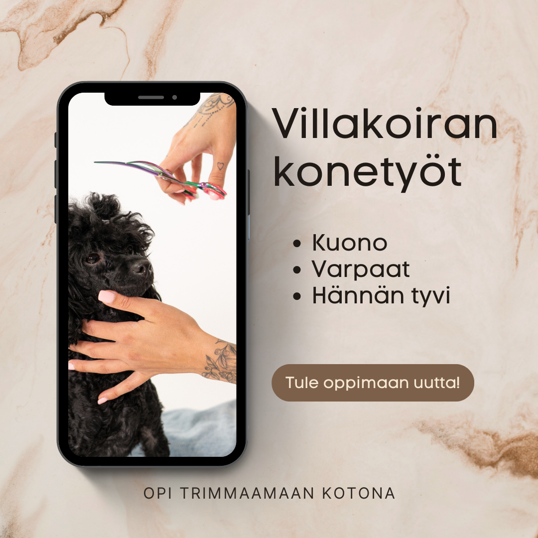 Villakoira on upea rotu, jonka turkki tarjoaa loputtomasti mahdollisuuksia – mutta samalla se vaatii säännöllistä ja oikeaoppista hoitoa pysyäkseen terveenä ja siistinä. Villakoiran konetyöt -kurssi on luotu juuri sinulle, joka haluat oppia tekemään tärkeimmät koneajot kotona varmoilla otteilla. Kurssi sopii niin kokeneelle villakoiran omistajalle kuin hänelle, joka vasta haaveilee omasta villakoirasta ja haluaa ymmärtää, mistä turkinhoito oikeasti koostuu.