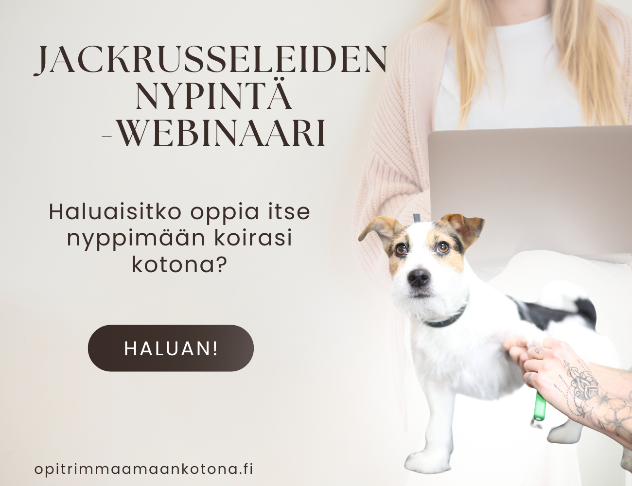 Webinaari pidetään Kajabin alustalla ja pääset mukaan kotisohvalta kännykän tai tietokoneen välityksellä. Pääset esittämään trimmaajille kysymyksiä q&a osiossa.
